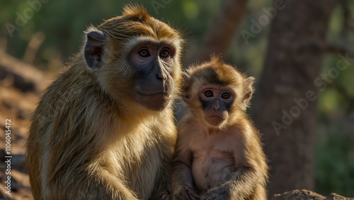 © claudunia, Obraz premium Female monkey with baby in Daulatabad, India.