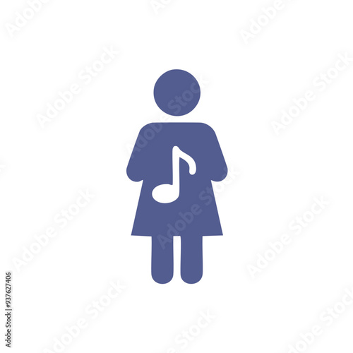 Fototapeta premium Female music icon. Simple icon of a female figure with a music note. Perfect for use in web design, social media, or app development.
