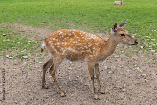 © An-T, Fototapeta premium Female of spotted deer on the deer farm in overcast