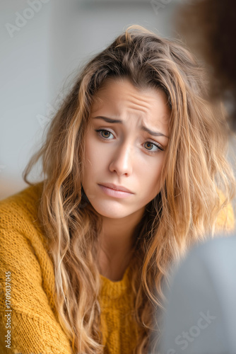© MVProductions, Fototapeta premium Female patient at the psychotherapist, strong feelings, crying