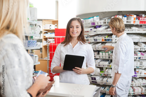 © Tyler Olson, Obraz premium Female Pharmacist Holding Tablet PC