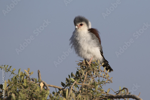 Naklejka premium female pygmy falcon sitting on the branches of a bush on the African savannah