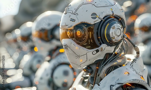 © minhnhat, Fototapeta premium Female robot-operated automatic call center concept answers customer calls.
