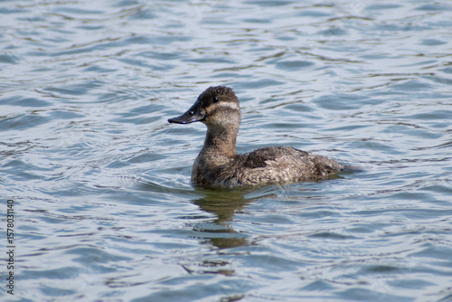 Fototapeta premium Female Ruddy Duck (Oxyura jamaicensis) Swimming In Lake