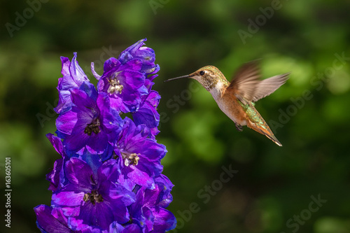 © Sandy Woods, Fototapeta premium Female Rufous Hummingbird Hovering