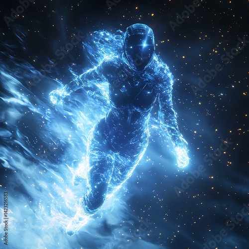 © Srijony, Fototapeta premium Female sci fi hero blasting forward high resolution picture