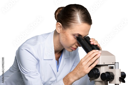 © BillionPhotos.com, Fototapeta premium Female Scientist / Researcher / Doctor Using Microscope