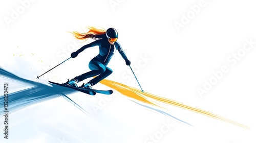 © LemonellArt, Obraz premium Female Skier on a Pristine Snowy Slope