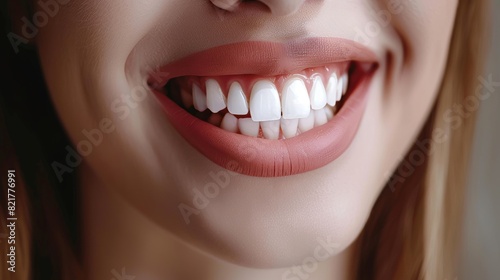 Fototapeta premium Female smile showing excellent dental health and hygiene. Suitable for dental...