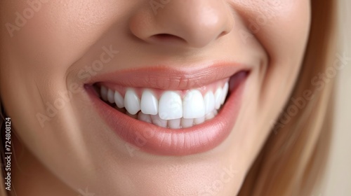 © buraratn, Obraz premium Female smile with natural white teeth closeup