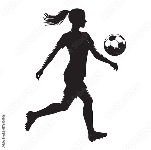 Obraz premium female soccer player black silhouette vector graphics
