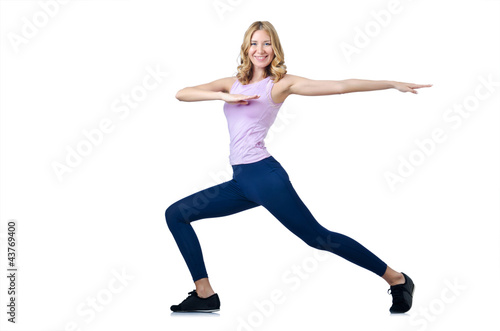 Fototapeta premium Female sportsman doing exercises on white