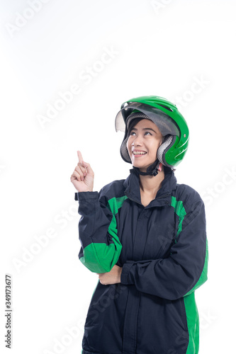 © Odua Images, Fototapeta premium female uber taxi driver presenting to copyspace isolated over white