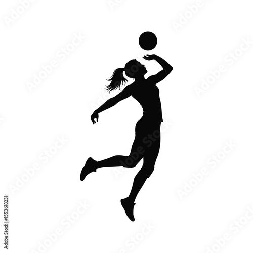 Naklejka premium Female Volleyball Player Silhouette Action Shot Vector Graphic Sport Athlete...