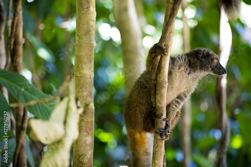 Fototapeta premium Female White-fronted Lemur, Eulemur albifrons, watching the photographer, Nosy Mangabe, Madagascar