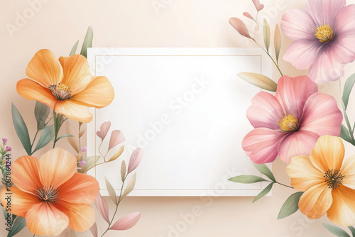 © Aliaksandra, Naklejka premium feminine greeting card, feminine greeting card mockup with elegant watercolor flowers and chic color palette, perfect for a beautiful womans day