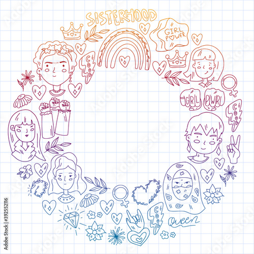 © helen_f, Fototapeta premium Feminism vector pattern. Fight for women rights. Hand lettering quotes.