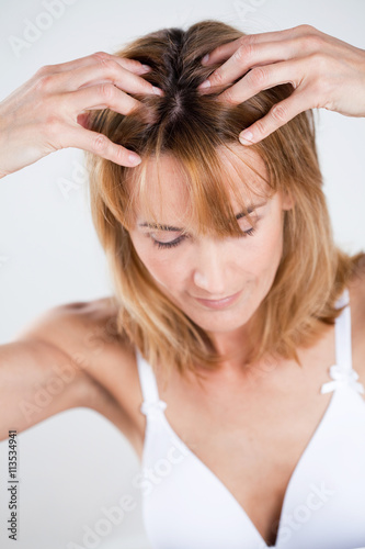 Fototapeta premium femme blonde se massant le cuir chevelu