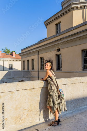 Fototapeta premium Femme dans les Anciennes prisons Saint-Paul Saint-Joseph de Lyon