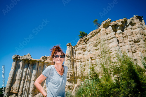 Naklejka premium Femme en visite dans les Orgues d'Ille-sur-Têt