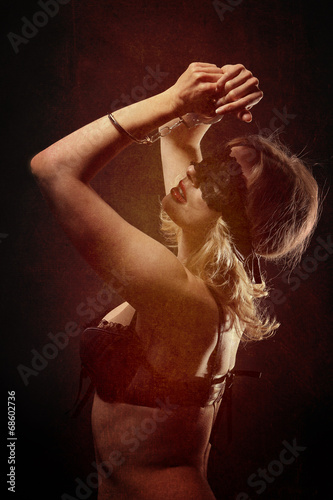 © mariesacha, Fototapeta premium femme sexy avec masque en dentelles et menottes