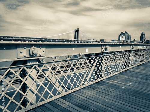 Obraz premium Fence and walkway at Brooklyn bridge and Manhattan bridge in vintage style