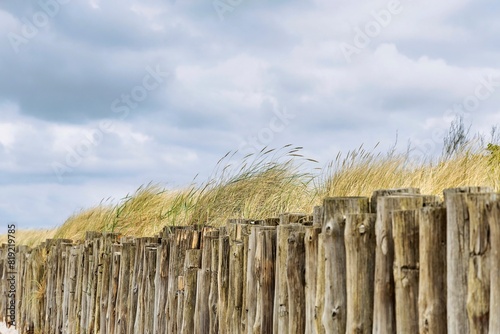 © Bianka, Fototapeta premium Fence made of logs with dune grass