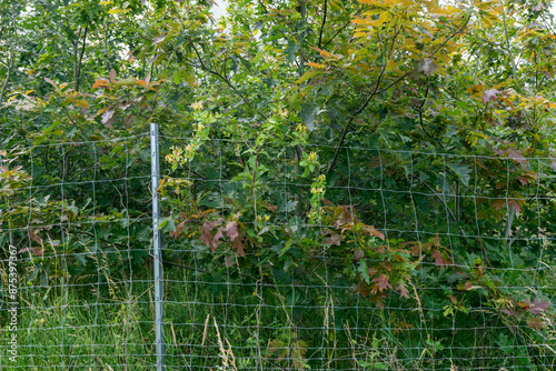 Fototapeta premium Fenced-in commercial forest with young deciduous trees