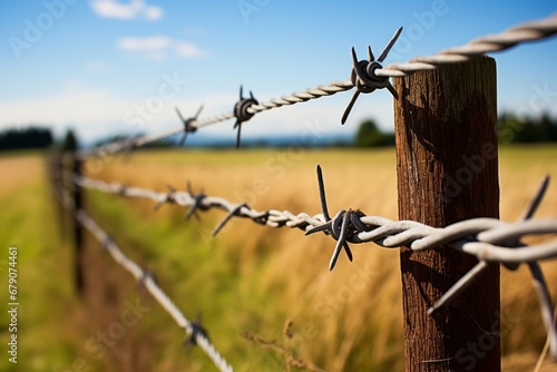 © Hitam Putih, Fototapeta premium Fenced off with sharp wire