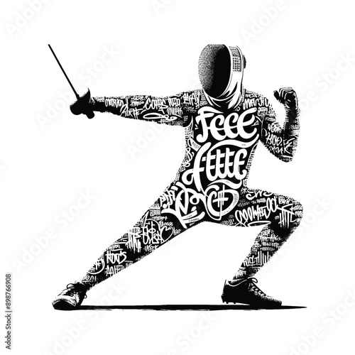 Fototapeta premium Fencing male player in graffiti tags, street art pattern illustration,...