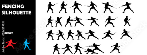 © Vishwajeet, Naklejka premium Fencing Silhouette Vector Set – Sword Fighting and Olympic Sport Scenes