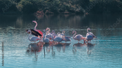 Obraz premium Fenicotteri nello stagno di Porto Taverna