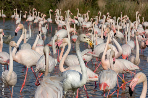 © Monica Viora, Obraz premium Fenicotteri rosa in Camargue a Pont de Gau