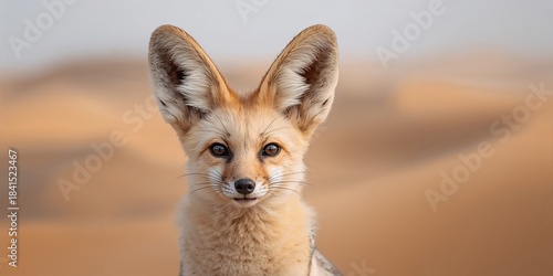 Obraz premium Fennec fox headshot small size and large ears, suitable for wildlife...