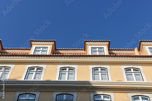 Obraz premium Fenster an Hausfront mit blauem Himmel in Lissabon