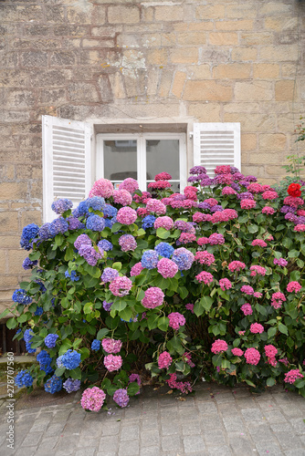 © Fotolyse, Naklejka premium Fenster mit Hortensien in der Bretagne