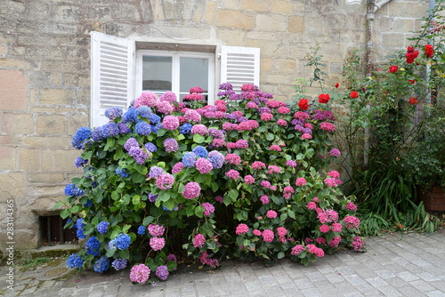 © Fotolyse, Naklejka premium Fenster mit Hortensien in der Bretagne