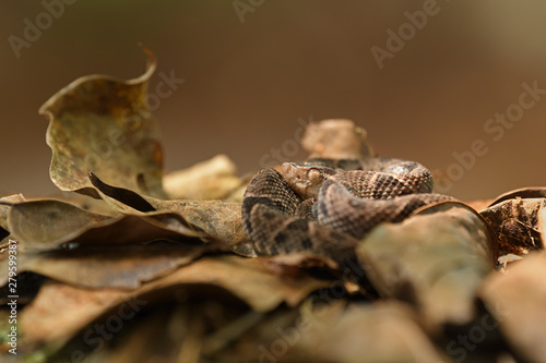 Fototapeta premium Fer-de-lance in dry leaves