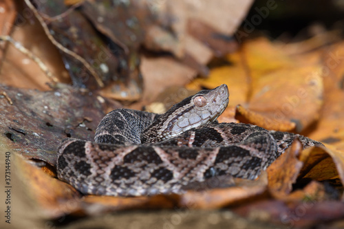 Fototapeta premium Fer-de-lance in dry leaves