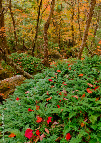 © Corey, Fototapeta premium Fern Covered Rocks in Fall Forest