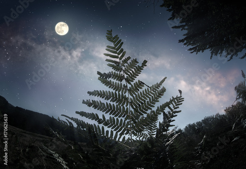 Naklejka premium Fern leaf in the moonlight