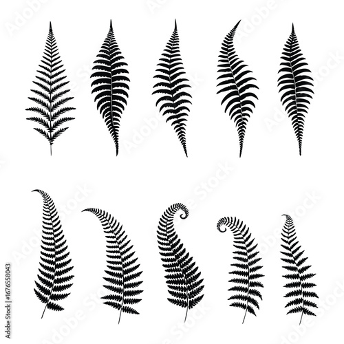 Naklejka premium Fern Leaf Silhouette Collection – 10 Botanical Vector Illustrations