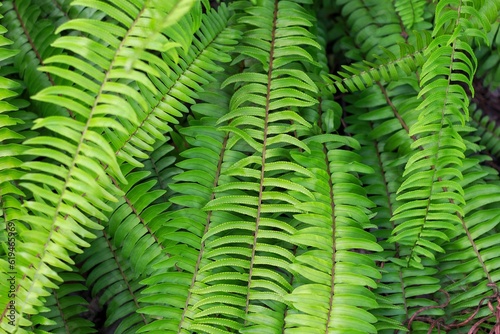 © mytour, Fototapeta premium Fern (Polypodiophyta) with green leaves texture background, plants in a garden