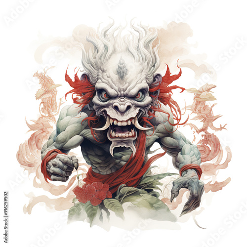© Chotijah, Naklejka premium Ferocious Demon with Red Accents and White Hair.
