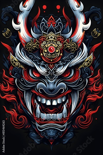Obraz premium Ferocious Japanese Hannya Mask with Intricate Esport Logo Styling