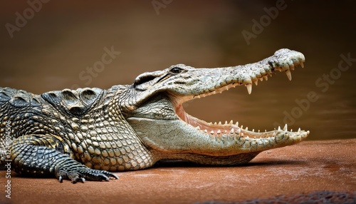 Fototapeta premium Ferocious Mugger Crocodile Baring Its Teeth, Capturing the Raw Power and...