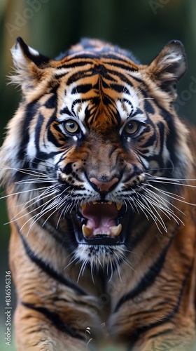 © LookChin AI, Fototapeta premium Ferocious Tiger s Snarling Expression Captures Predatory Dominance in Nature
