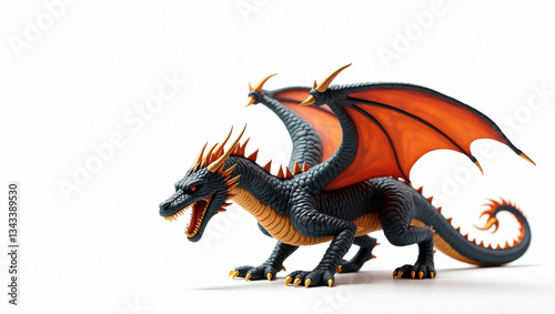 Naklejka premium Ferocious Two-Headed Dragon with Fiery Wings