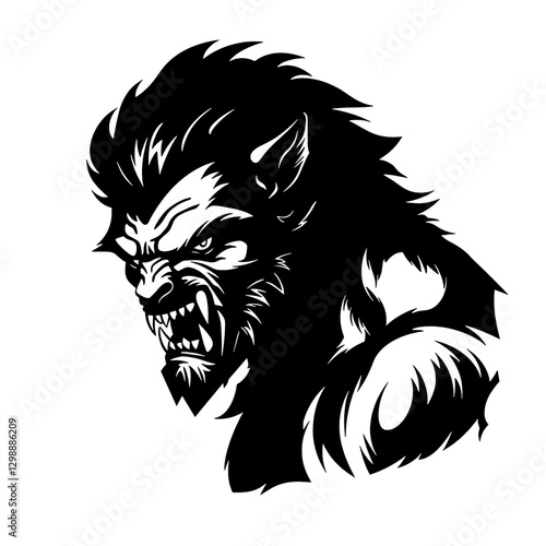 © Ilia, Fototapeta premium Ferocious Werewolf – Illustration for Fantasy Art, Game Design, Book Covers, and Dark-Themed Merchandise. Fierce Spirit and Mystical Aura of the Werewolf, Making It Ideal for Horror, Mythology