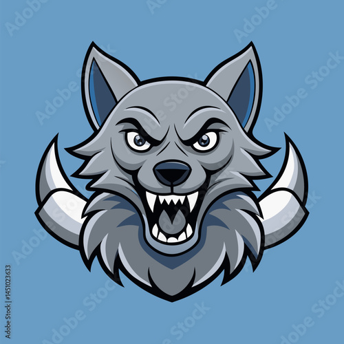 Obraz premium Ferocious Wolf Emblem: A striking illustration of a wolf, head and shoulders, exuding power and intensity. Its sharp teeth and intense gaze create a commanding presence.